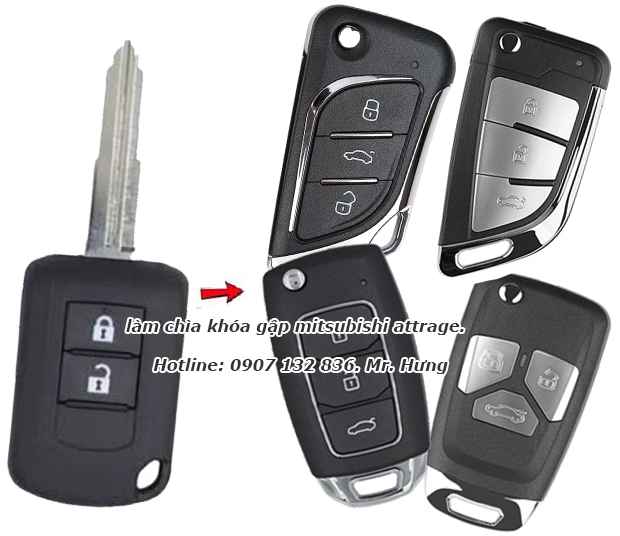 Làm chìa khóa gập Mitsubishi Attrage tại Sài Gòn. Hotline: 0907 132 836. Mr. Hưng